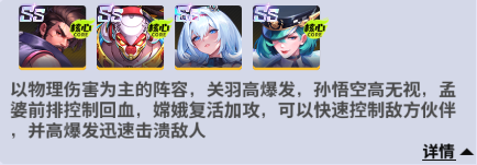 阵容组成:关羽+孙悟空+嫦娥+孟婆