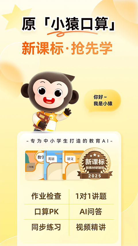 小猿AIapp是猿辅导公司专为中小学生量身定制的一款学习AI工具,内置作业检查、拍照搜题、口算练习等功能,在帮助孩子高效学习的同时,也减轻了家长、老师减轻作业检查负担。软件目前已接入DeepSeek模型,能够实现语、数、英全科作业的在线批改,学生或者家长只需拍照或上传图片,秒级时间内就能自动检查作业的正确情况。软件内置口算pk栏目,学生可在此进行实时口算对战,涵盖乘除法、倒数、百分数等知识,让孩子在比赛中牢记知识!