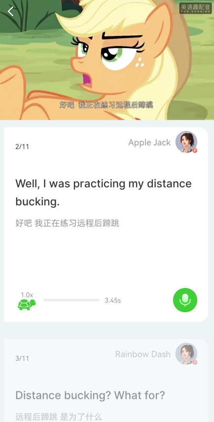 英语趣配音App是一款趣味英语配音软件,并提供内置AI智能辅助用户学习。其中拥有海量影视、动漫、美剧素材任你挑选,让你在模仿地道口语的同时享受配音乐趣。用户还可以和好友组队PK、分享作品,一起互动切磋,让英语口语练习不再枯燥。英语趣配音APP最新版本同步人教版教材,从单词到整本课本,全面覆盖学习内容,一站式辅导你的英语学习。不管你是初高中生、大学生,还是上班族,都能在这里找到适合自己的趣味练口语方式,让学习英语更轻松、更高效,欢迎有需要此软件的用户前来本站免费下载安装。