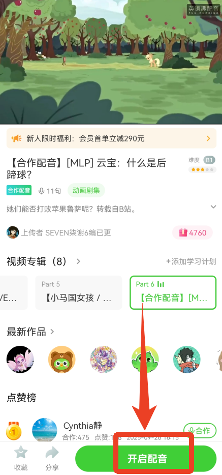 3、点击开启【合作模式】,之后你只需要配部分,留出空白即可,空白部分会由原声填补。