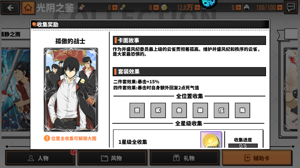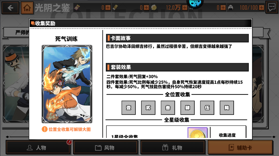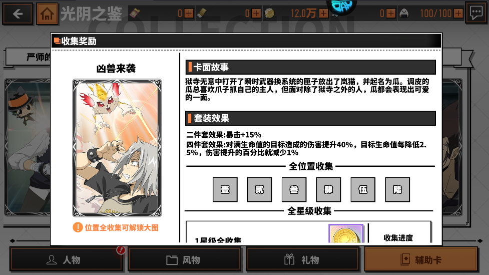 二件套效果:暴击+15%四件套效果:暴击时自身额外回复2点死气值