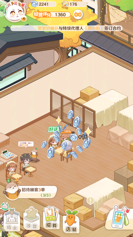 不要盲目收集菜谱,专注高收益菜更划算;岗位要匹配技能,制作岗配提速型,前台放服务型。重复3星以上菜谱可分解换金币,避免资源浪费。后期还会开放「沙盘考验」「三消合成家具」等轻玩法,既能拿奖励,又能丰富经营体验。