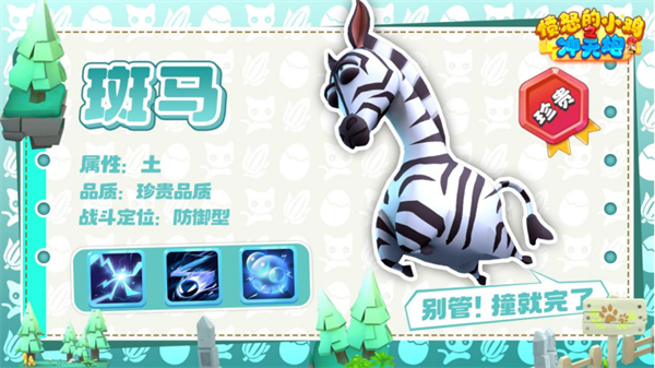 黑白条纹如疾风掠地,它一路狂奔、正面硬刚,把敌人撞得像保龄球一样四散飞出。高防御加持下,它几乎不知疼痛,把战场当成马拉松赛道,冲锋所过之处只剩翻滚的敌人。