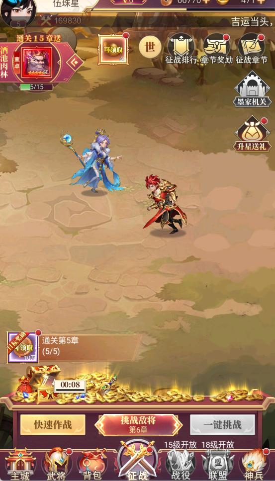 4、联盟技能和神兵精炼是稳定提升战力的方法。