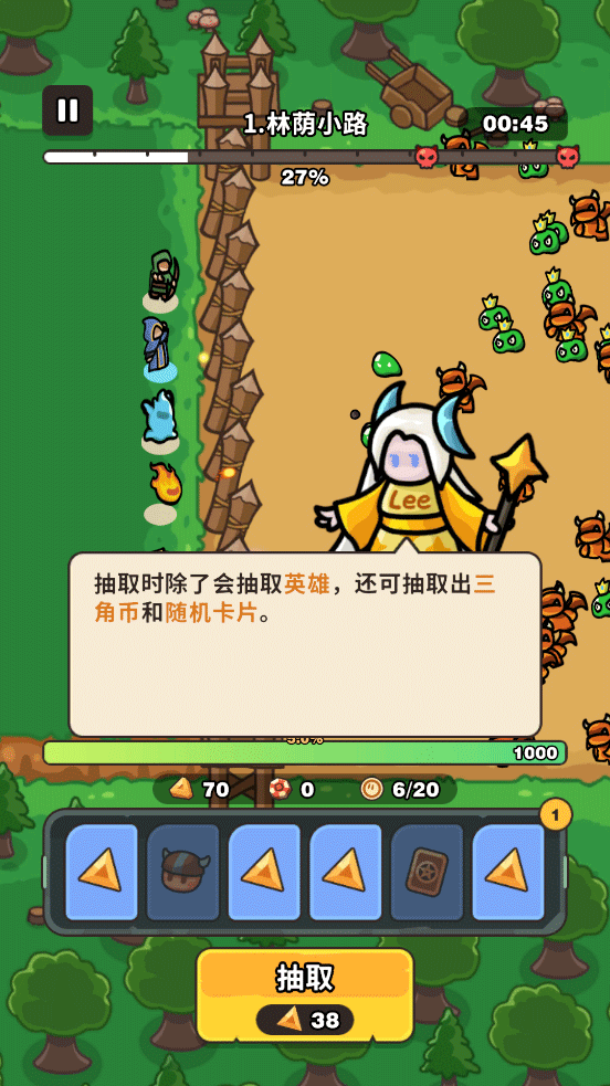 4、每次抽取不仅会出现英雄,还可能额外获得三角币与随机卡片。