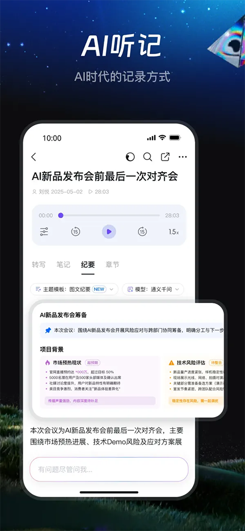 AI时代的记录方式:闪记升级为“AI 听记”,30+ 行业场景模板,支持声纹自动识别发言人。