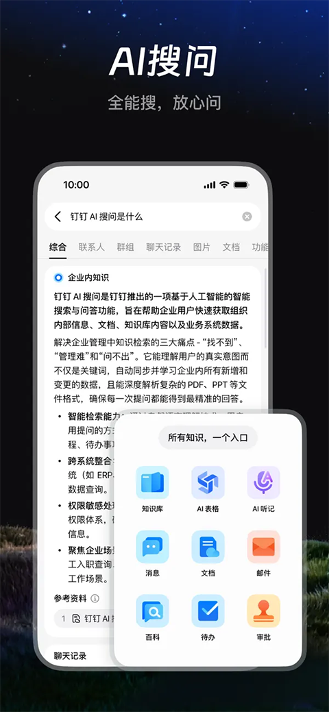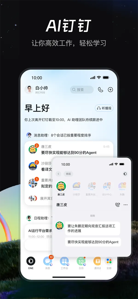 1、Al 钉钉,简洁、高效、以人为本