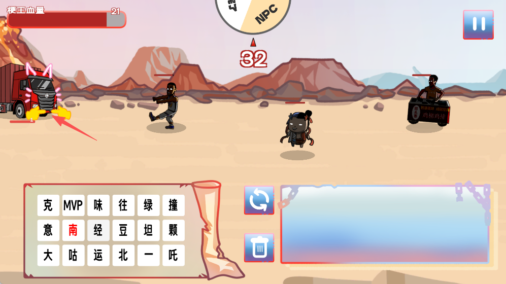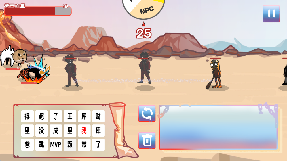 1、拼字成功即可生成角色加入战场,抵御黑化版热梗敌人的进攻。