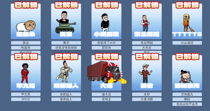 3、包含雨姐、哈基米、灵珠魔丸等数十种角色,形象魔性搞笑。