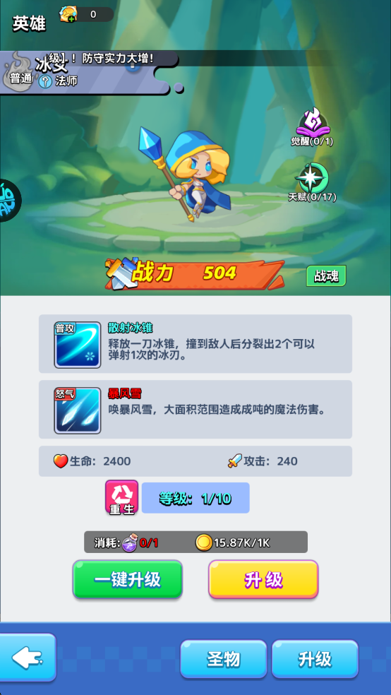 怒气技能:【暴风雪】唤暴风雪,大面积范围造成成吨的魔法伤害。