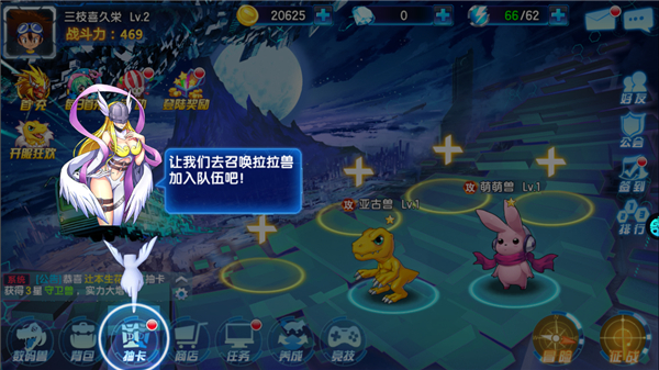 数码大冒险中包含了众多熟悉的数码兽角色,如亚古兽、加布兽、迪路兽等,玩家可以通过各种途径收集数码兽蛋、碎片等资源,孵化、进化并培养它们,提升数码兽的战斗力。同时目前游戏内设有竞技场、公会战、世界BOSS等多人互动玩法,玩家可以与其他玩家进行实时对战,或组队合作挑战强敌,享受社交竞技的乐趣。