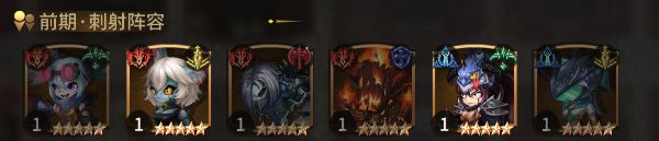 阵容策略:此队伍英雄前期容易获得,可为前期推图提供优秀的控制、持续输出、爆发输出。