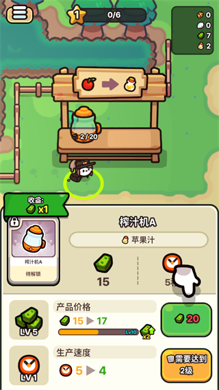 游戏的主要目标就是售卖饮品赚取利润,解锁附近区域逐步壮大你的水果王国