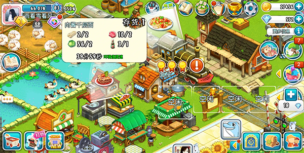 矿洞里有各种宝石等你开采,需要镐头、铁锹和炸药,每使用一次工具生成3-4个随机矿石。矿洞需要22级和26000金币才能开启。你还需要一个矿石精炼厂,用于把矿石原料生产成宝石,满足订单需求