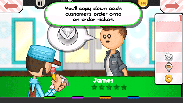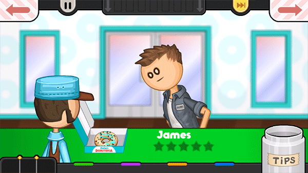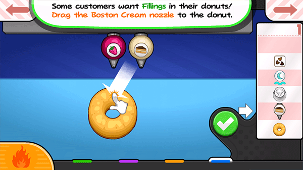 老爹甜甜圈店(Papas Donuteria To Go),也被叫做爸爸的甜甜圈,这是一款好玩的美食经营游戏,玩家在游戏中需要使用各种面团和形状来为顾客制作美味甜甜圈,了解每个顾客不同的需求,在规定的时间内完成各种甜甜圈的制作,及时给顾客,最终会根据顾客的评分来决定玩家的收入。在制作甜甜圈的过程中,油炸甜甜圈是较为关键的一步,甜甜圈需要油炸之后才可以出炉,玩家需要仔细观察炉子中的计量槽,防止甜甜圈炸焦,计量槽颜色越深则表示甜甜圈接近完成,尤其需要注意的甜甜圈有两面,一定要两面都炸过才行。同时游戏中还插入了不少小游戏,玩家可以通过小游戏来收集金币和贴纸,用来购买厨房工具和装饰店面。