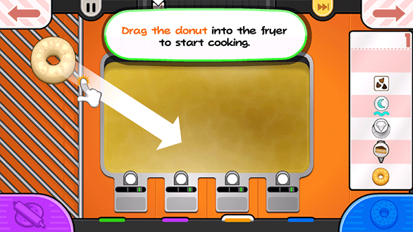 2、体验十分欢乐的游戏挑战,卡通风格的游戏画面,一起制作美味的甜甜圈吧。