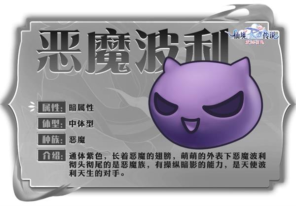 通体涂抹着深邃的紫色,羽翼展开如同夜空的流星。萌态外表下隐藏着邪恶的本质,是彻头彻尾的恶魔族。掌握着操控暗影的神秘能力,恶魔波利与天使波利是天生的对手。其紫色羽翼仿佛彩虹的梦幻,却投下深沉的阴影。