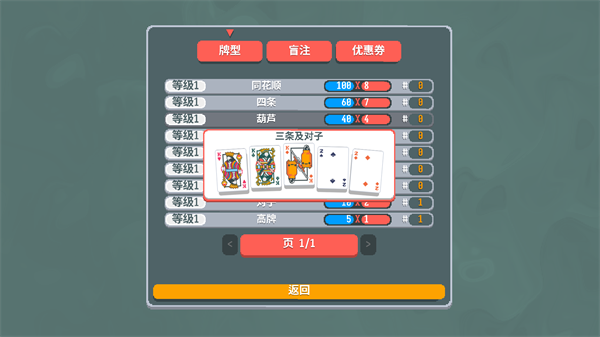 4、开始出牌,不同的牌型可以打出不同的点数和倍率;