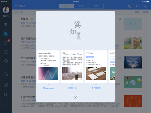 为知笔记ipad版是一款非常符合国人使用习惯的云笔记,内部集成多级标签、多级目录、Markdown以及无限存储空间,能够满足大部分用户的基本需求。有了为知笔记ipad版,你就相当于有了在线记事本、日记本、便签和备忘录,并且软件还支持多平台同步,让你无论在手机、平板还是电脑、网页上都能实时查看记录重要信息,非常便捷。