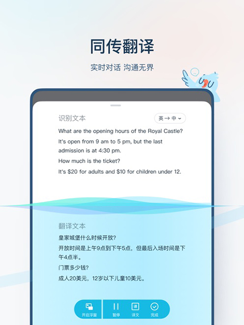 2、语音翻译——帮你与外国人随时交流。精准的语音识别及翻译引擎,让沟通没有障碍。反应灵敏迅速精准堪比同声传译;