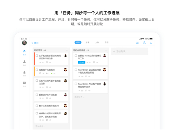 另外,teambition ipad版作为一款优秀的团队协作app,软件具有超多协作功能,日程安排、任务管理、文件共享、账目记录、标签等等功能能满足日常的工作需求。软件还支持分享到微信,聊天非常方便。目前软件还与钉钉进行合作,只为广大用户提供最优质的沟通协作工具。需要的可以下载使用。