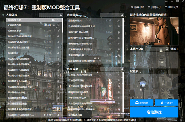 最终幻想7重制版mod整合工具,这款mod整合工具不仅涵盖了目前最新最热的有关于最终幻想7重制版的这款游戏的各种mod资源,而且该整合工具还支持一键快速安装、配置、卸载等实用功能,能够让你的游戏体验更上一层楼。不仅如此,它增加了游戏本地MOD压缩格式智能识别以及多层目录识别功能,这样玩家们就可以更好的对下载的mod进行诸如安装、配置、卸载等操作,同时本站为让广大玩家们的知道如何正确地使用这款mod整合工具,小编还在下午带来了详细的图文安装教程,此外要是遇到mod的各种问题也是可以在本文进行查看来解决,有需要这款mod整合工具的小伙伴们欢迎前来本站免费下载使用~