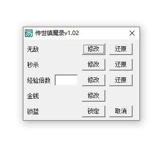 传世镇魔录修改器是专为同名游戏传世镇魔录制作的一款修改器工具,该游戏是一款角色扮演类游戏,使用这款修改器工具可以让你在游戏中无敌,获得大量金钱,具有经验翻倍 金钱无限 、锁定无限蓝等功能,让你在游戏中秒杀,喜欢玩该游戏的朋友一定不要错过。