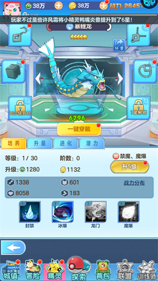 通过升级、升星、进化、潜力培养等方式提升战力,搭配技能快速提升宝可梦战力。