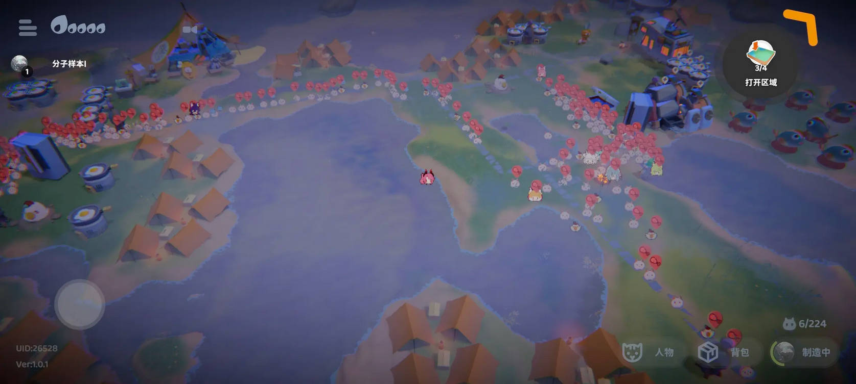 整体猫口优先供给蛋岛,当鸡蛋产出有富裕的时候再慢慢爆兵。大方向布局的话,笔者目前有两个思路。