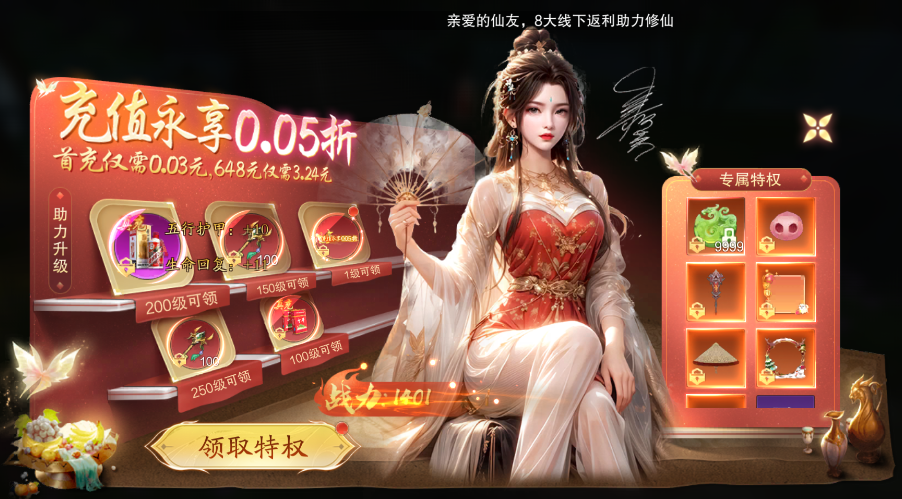 【仙玉返现】充值仙玉永久3倍返利,上不封顶