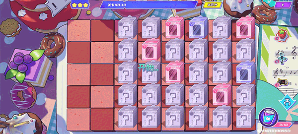 ② 个人建议开局可以先把五个粉盒子分别放第一排,五个全放,再从最后一排开始点盒子。