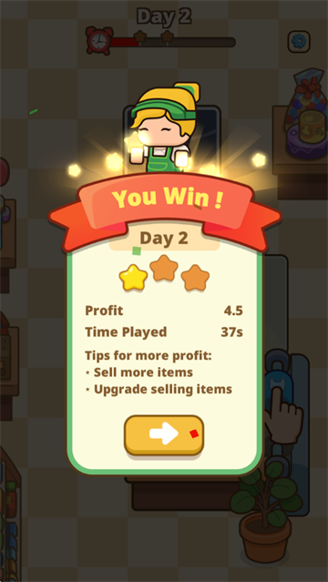将您的小杂货店打造成一个熙熙攘攘的超市。解锁并展示新产品——饮料、零食、新鲜食品——并保持库存充足,以吸引更多顾客。