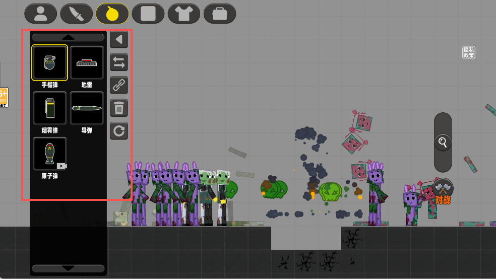 点击界面上方的炸弹图标,可以选择「手榴弹」等武器道具,对感染体造成范围伤害,在关键时刻快速清理敌人。