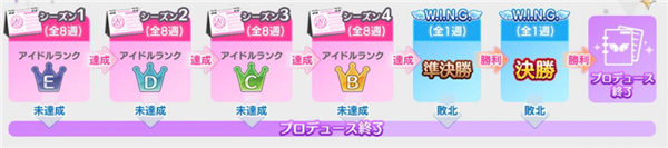 如果玩家无法达成晋级条件、无法在Wing比赛中获得第一名,育成就会立即中断。