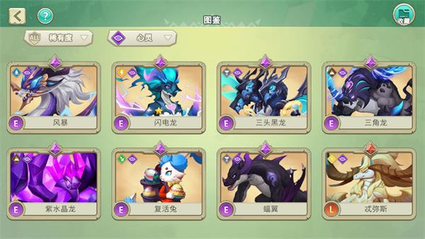 在培育界面的左右两侧会分别显示两只龙的属性,上方会显示出这对组合之下可能会获得的龙蛋类型。图鉴已经收集的龙蛋会直接显示龙蛋样式,而未解锁的龙蛋则显示为黑色剪影。