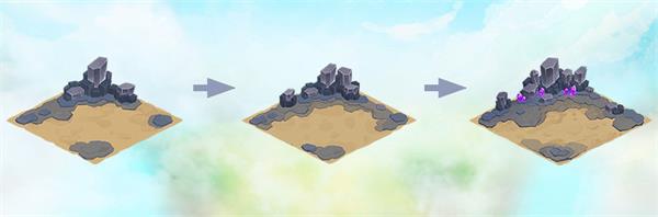 夜幕降临后,地表上浮起的矿石会放出隐约的紫光,强大的磁力吸附着周围的金属。通过吸取其中的钢元素可以帮助钢属性龙提升力量。