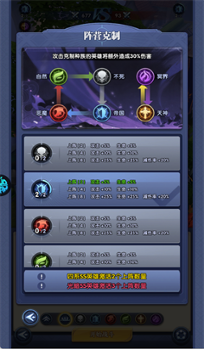 自然→不死→帝国→恶魔→自然,冥界和天神相互循环克制,不同阵营之间存在克制关系,同阵营的英雄可以叠加攻击力、生命值等属性加成,合理搭配阵容能有效提升战斗力。
