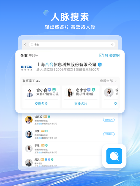 从查找、评估、到联络,名片全能王帮你快速实现与企业对话。