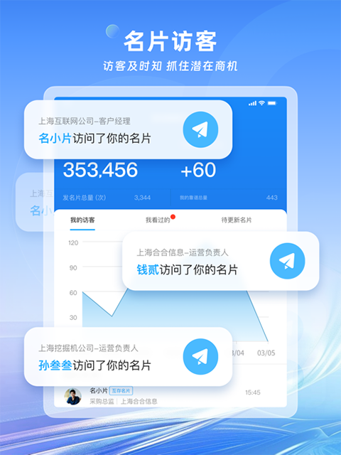 3、【名片访客实时查看,不遗漏潜在商机】