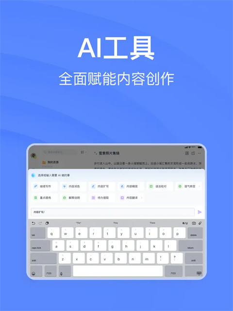 有道云笔记ipad版是一款深受广大用户喜爱的云存储及云协作平台。软件支持多终端设备使用,无论你是在电脑PC端还是安卓、ios等手机平板上都实时同步协作。有道云笔记ipad版的出现和使用,让广大企业员工之间的工作效率大幅提升,沟通互动更加便捷。目前软件支持多样化的笔记形式,扫描、手写、文字、图像、声音、涂鸦、Markdown任何格式的文档、备忘、待办事项,任何方式记录你的生活。