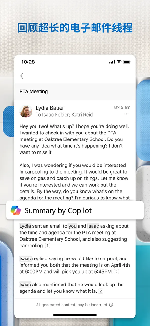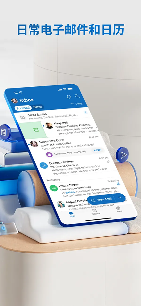 5、快速查找任何内容,轻点一下筛选收件箱,仅显示未读、标记或有附件的邮件,只需输入几个字母即可快速查找要寻找的邮件、联系人和文件。