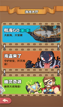 从游戏大厅 “航海 GO(第 1 章)” 起步,熟悉基础战斗机制,通关后解锁 “海盗来了”“幽灵奇袭” 玩法;战斗中注意怪物刷新进度,提前用神器清掉前排怪,避免被围殴。