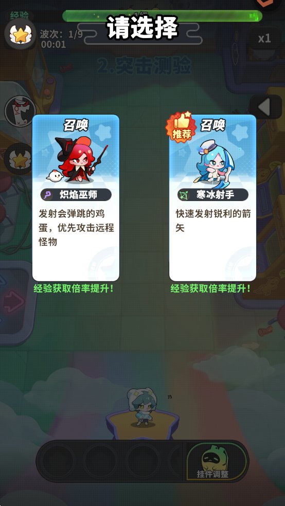 不同的精灵拥有不同的技能,获得足够的经验升级后,可以选择召唤新的精灵或者进阶已召唤的精灵