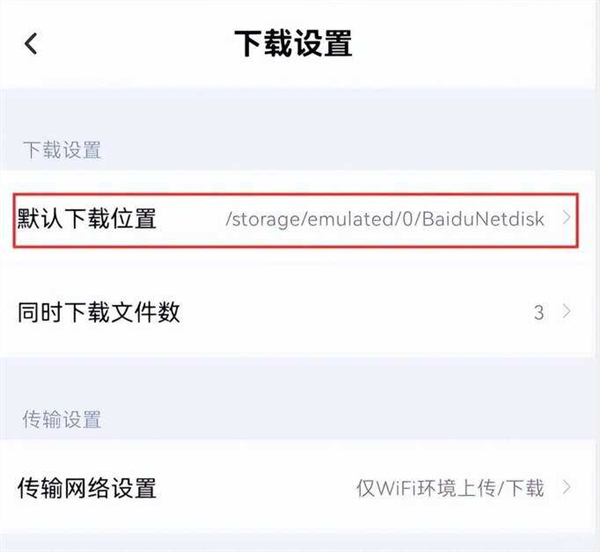 打开百度网盘app,点击下方菜单中我的,再点击设置,下拉找到下载设置,就可以看到默认下载位置,然后可以通过手机自带的文件管理进入对应目录查看。
