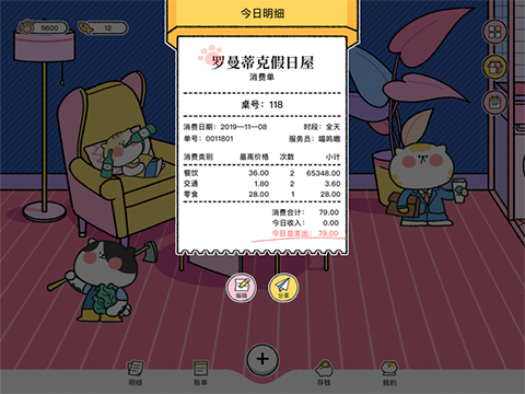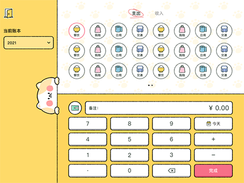- 兼顾可爱轻松游戏风格与实用的账目统计功能(周、月、年视图自由切换)