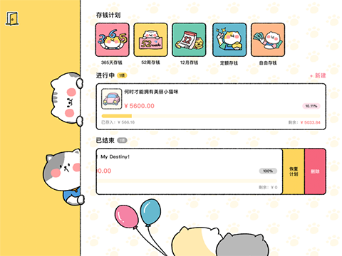 喵喵记账iPad版拥有超级快速的记账模式,兼顾可爱的游戏,还有实用的记账工具,让记账变得更加容易轻松,每在这个记账本上记下一笔账,都有可能吸引来一只猫咪,这一点是非常有趣的。同时更有趣的就是记账中的分类标签,每一个都非常可爱,界面美观,记账模式也是有所不同的,采用跟超市购买东西的单子有点类似,加上好听的名字,让你记账变得更有趣。