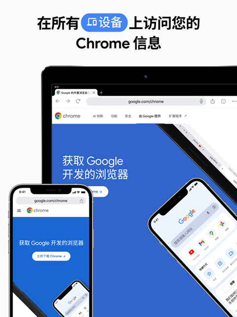登录 Chrome 浏览器即可将您在计算机中打开的标签页、书签、密码和多功能框数 据同步到您的 iPhone、iPod touch 或 iPad 上。随时随地享受无缝体验。