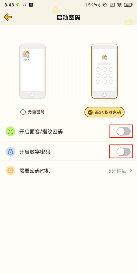 3、勾选面容/指纹解锁,下方滑动开启面容/指纹或数字密码即可。