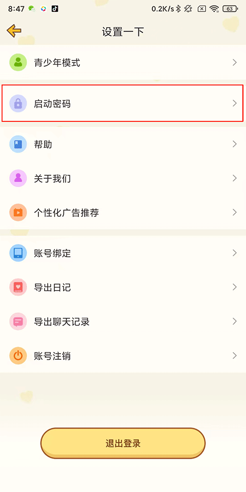 2、在设置页面点击导出日记;