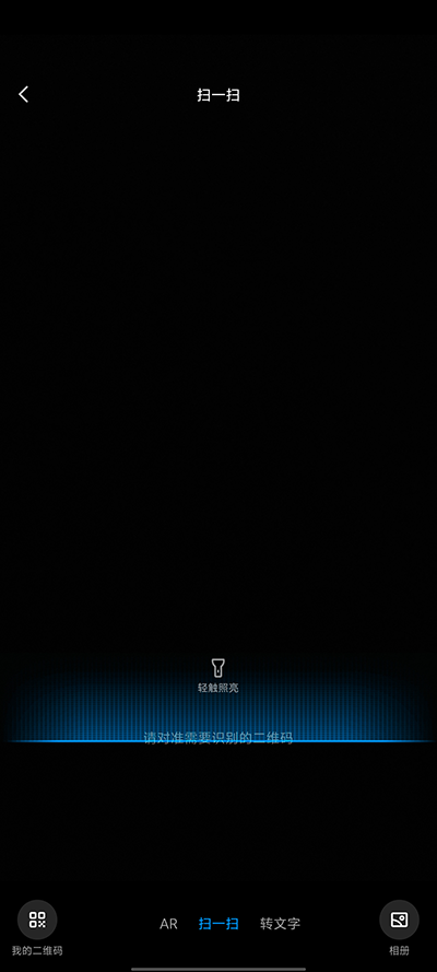 3、点击即可进入扫一扫页面,将摄像头对准二维码即可进行扫描。